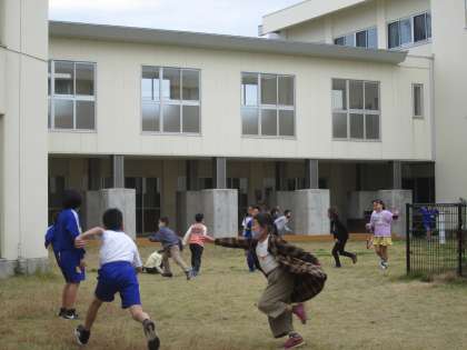 自動車文庫、6年生の卒業アルバム用の委員会写真撮影、と慌ただしい時間でもありました。中庭では2年対4年のけいどろ対決が当たり前のように行われていました。