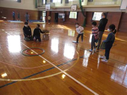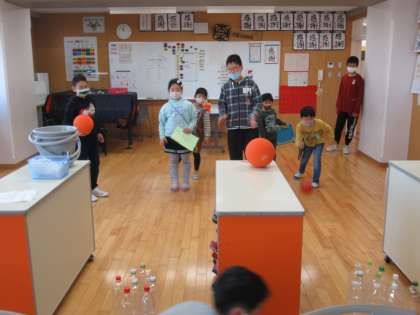 6年生が用意した、くじ引きやボーリングゲーム等のお店に、1年生が遊びに行きます。