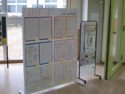 来週は「家庭学習週間」です。今年度は、「自主学習する力」に重点をおいて取り組んでいます。生活表と連動させた「振り返り表」には、学年に応じた学習例も掲載しました。2学期は自主学習への見通しがよりもてるように、写真にあるように各学年の学習ノート例を紹介するコーナーを設置したり、ヒント集をノートに貼ったりして、子供たちの学習をサポートします。