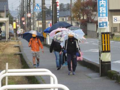 冷たい雨の中、1年生が合羽を引きづりそうになりながらも頑張って登校していた3日(木)の朝です。