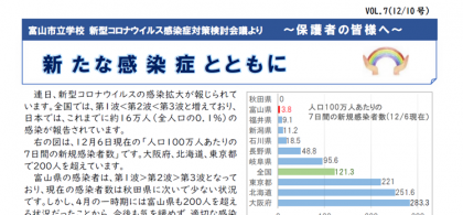 新型コロナウイルス感染症対策検討会議だよりVOL7 公開日 2020/12/10 更新日 2020/12/10 学校の様子 本ホームページ右の「配付文書」より、「新型コロナウイルス感染症対策検討会議だよりvol.7」の閲覧が可能です。ぜひ、ご覧ください。