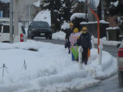 さて、今朝も、かなり遠くから大変な雪道の中を歩いて登校する子がたくさんいました。学校でも班のみんなで声を掛け合い、力を合わせて登校するように声をかけています。月曜日も雪が残る朝となりそうですが、子供たちへの励ましをよろしくお願いいたします。