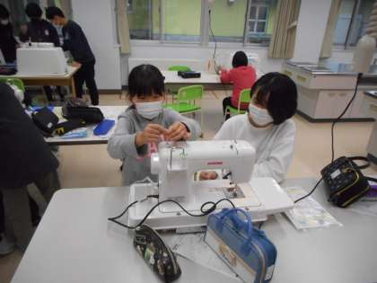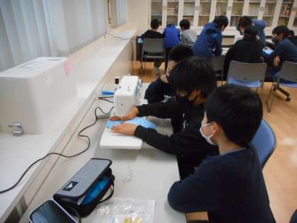ミシンにトライ!(5年生) 公開日 2021/02/02 更新日 2021/02/02 5年生 2月2日(火)、家庭科の時間にミシンに挑戦しています。初めてのミシンに準備段階から苦戦しつつ、友達と協力しながら練習を進めています。