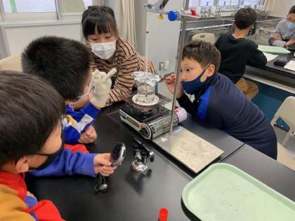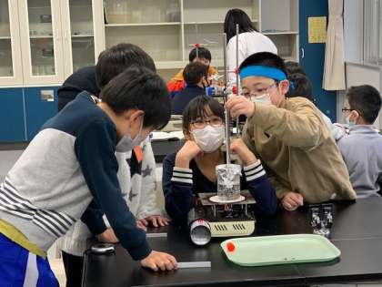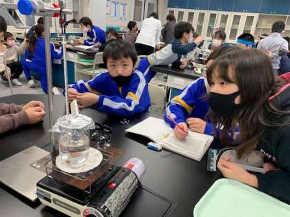 2月2日(火)、今日の理科では、水を熱すると温度やようすはどうなるのか実験をしました。前時の理科で、水を冷やすと、水の温度やようすはどうなるか実験した子供たちですが、反対に熱するとどうなるのか、生活経験やこれまでの学習と結び付けながら予想をしたり、実験をしたりしていました。どの班も、真剣に観察し、少しの変化も見逃さないようにしているのが印象的でした。