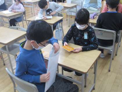 総合「ぼくたち・わたしたちがにんてい 富山市のたから2021」で先月末に担当の施設に書いたお手紙の返事が届きました。毎朝「わたしのところから封筒返ってきた?」と聞き、資料が届くのを楽しみにしていた子供たち。中を開けると、たくさんのパンフレットや資料が入っており、難しい文章や漢字も一生懸命読んでいました。ご協力いただいた施設の方々に感謝の気持ちを込めて、これからの学習をしていきましょうね。