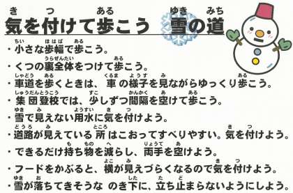 太田っ子のみなさんへ「気を付けて歩こう雪の道」