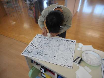 2月19日(金)、図工の時間にステンシル版画を作成しています。版を切り終えたら、初めに白色をぬり、その上から色を重ねていきます。どのような作品になるか楽しみですね。