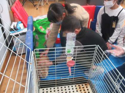 2月15日(月)〜19日(金)は、飼育・栽培委員会による「うさぎのふれあい活動」がありました。普段は、委員会の子供たちが世話をしていますが、より多くの太田っ子に生き物とふれあってほしいという委員の子供たちの思いから行うことになりました。事前に誰が参加するのか分かっていたので、分散して密にならないよう、うさぎとふれあうことができました。