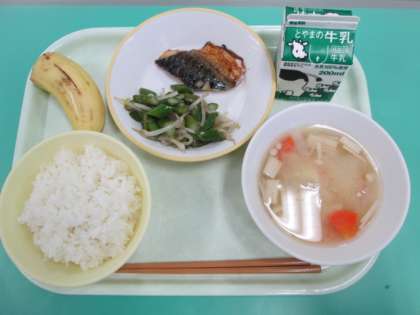 3月2日(火)の給食 公開日 2021/03/02 更新日 2021/03/02 給食室 今日の献立は、ごはん、牛乳、さばの塩焼き、もやしとアスパラのソテー、みそ汁、バナナ です。 ソテーはごま油で炒め、塩こしょうやしゅうゆで味付けしています。シンプルな料理ですが子供たちにも食べやすく、美味しかったです。