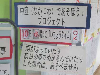 「あっ、昭和7年って書いてある」「どうやって門柱を切るの?」という質問を、朝の挨拶と共に受けた10日(水)です。家庭でも話題にされていることを有り難く思います。天気予報では、お昼には太陽が出るとのことで、中庭で遊べそうな気もするのですが。