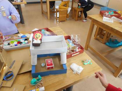 3月10日(水)3・4時間目、図画工作科の学習で「ともだちハウス」をつくりました。「ともだちハウス」は、先週、粘土でつくった小さな友達のための家です。