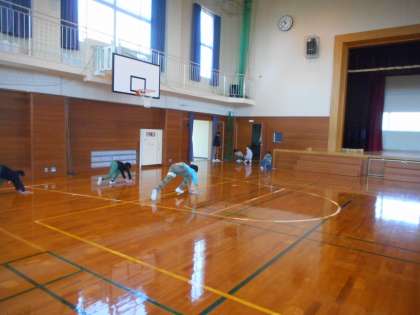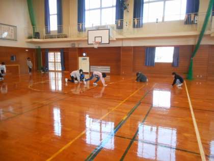 3月11日(木)、卒業式に向けての特別清掃として、体育館のぞうきんがけをしました。広い体育館ですが、みんなで協力して磨きました。卒業式への気持ちを高めていきましょう。