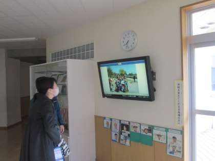 玄関テレビは、卒業生の1年生からの画像をスクリーンセーバーで映しています。先生方がそれを見ながら、「みんな大きくなったね」と語っている17日(水)です。