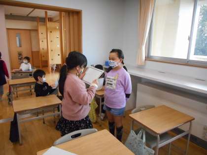 恥ずかしそうに読み合う子供たちの姿が見られました。3年生でも同じ教室で学習していく子供たちです。これからも互いの良さを認め合って、さらに絆を深めてほしいです。