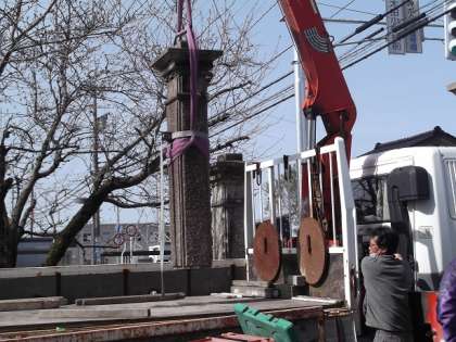 今年度の卒業生38名を見送り、長い間太田っ子を見守ってきた門柱の撤去作業が始まりました。子供たちや保護者、地域のみなさんはもちろん、太田小学校に関わった全ての人にとって寂しいことではありますが、一部は別の場所に残されます。新年度、姿を変えた門柱をぜひ、見に来ていただきたいと思います。