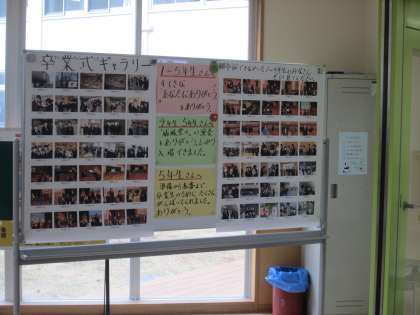 当たり前にいて安心感を与えてくれていた6年生が卒業し、少し寂しい朝です。玄関前に卒業式の様子を紹介するギャラリーが設置され、入場の合奏(4,5年)や在校生の歌を動画でプレゼントしてくれた感謝のメセージが伝えられています。