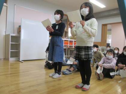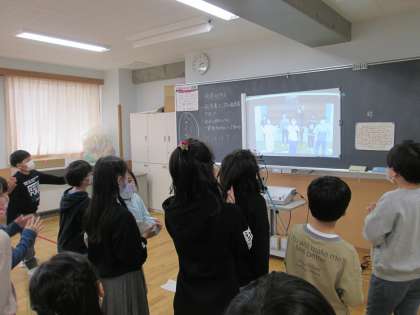 高岡の太田小学校の皆さんからも高岡のことを教えてもらい、最後はみんなで歌を歌いました。離れていても繋がれる喜び、他校の人と関われるよさを感じられたとてもよい時間でした。