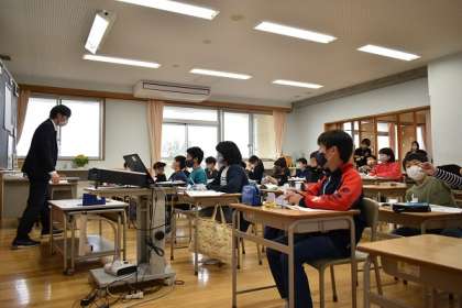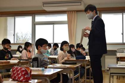 上学年は、4年生が道徳、5、6年生は算数の授業をしました。