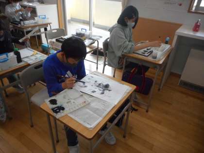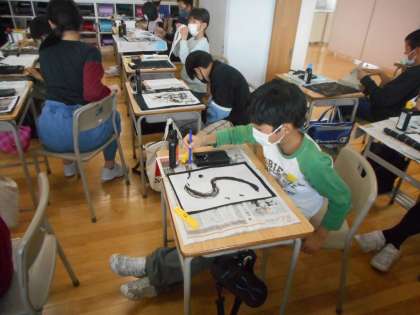 4月22日(木)、図工の時間に水墨画に挑戦しました。今回は、様々な技法を試したり、墨と水のバランスを調整したりして楽しみました。ダイナミックに墨と水で様々な表現をしていました。