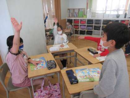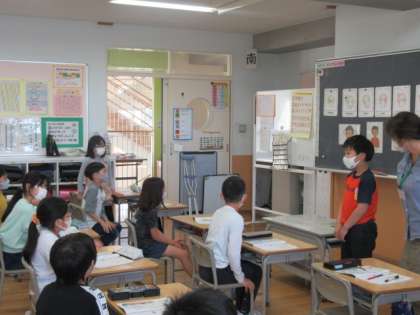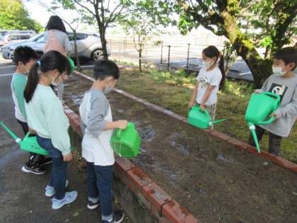 GW明けの2日間、元気に登校してきた子供たちでした。朝は、先週理科で植えたヒマワリやオクラなどに、熱心に水やりをする子供たちや、外国語活動では、ジェスチャークイズゲームを通して、積極的に英語のあいさつに親しむ子供たちがいました。ぜひお家でも、「How are you?」「I'm ○○」「Thank you, and you?」などと会話をしてみてください。