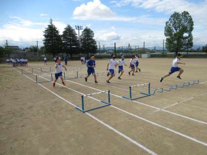 体育 ハードル走 5年生 公開日 2021/05/11 更新日 2021/05/11 5年生 運動会での高学年種目「ハードル走」の練習に取り組みました。リズムよく跳び越えることができるよう何度も練習しました。
