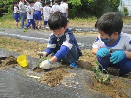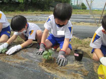 5月11日(火)、今日の生活科では、みんなで買ってきた野菜の苗を植えました。水をあげるときに「大きくなってね」と言っている子供たちの姿から、これから育てる野菜への気持ちが伝わってきました。大きく、元気に育つといいですね。