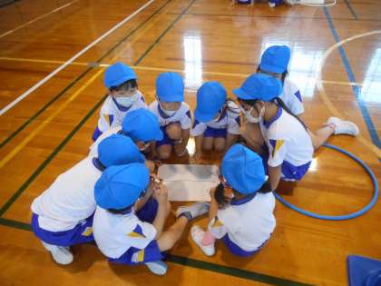 子供たちは「どうすれば、早く戻ることができるのか」を、それぞれの団で相談しています。
