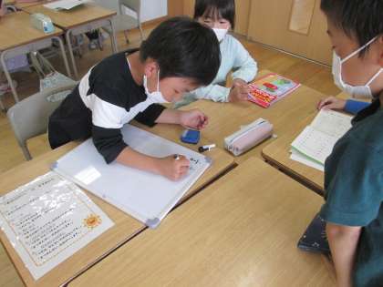 5月26日(水)、国語の学習で「同じ部分をもつ漢字」の仲間集めをしました。グループで教科書やドリルを見ながら、協力して漢字を集めることができました。まだまだやりたい!と、漢字が大好きな子供たちです。