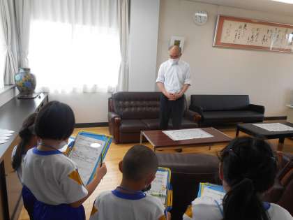 5月24日(月)みどりのタイムに、生活科の学習で学校の先生方にインタビューをしました。先生方に会いに行って、自分たちで考えた質問をします。
