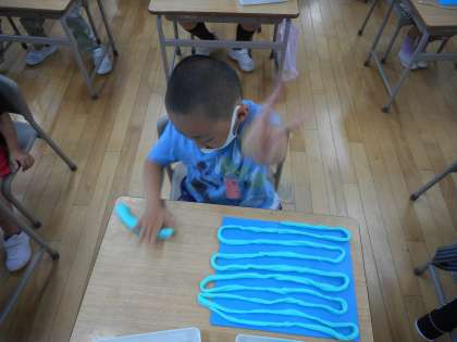 「ひもひもねんど」のがくしゅうをしたよ!(1年生)