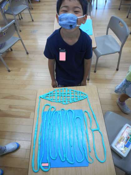 粘土でひもをつくる中から、どんどんイメージを広げて、楽しく活動することができました。