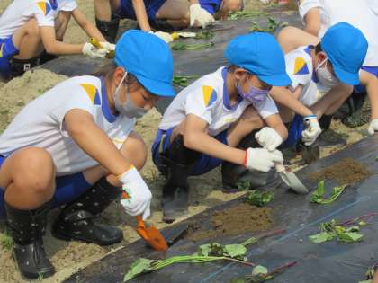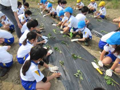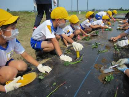 4年生と一緒にサツマイモの苗を植えました。一人2本の苗を、丁寧に植えることができました。秋には、たくさん実るといいですね。