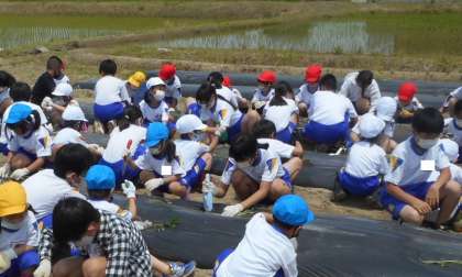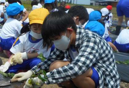 6月2日(水)4時間目、1・6年生が合同で、サツマイモの苗を植えました。