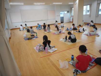 6月4日(金)、今日は本来下学年の遠足の日でしたが、延期になったため、お昼はお弁当を持参して、みんなで食べました。残念ながら雨だったので、広い室内で間隔をとり、ピクニックのようにレジャーシートを敷いて食べました。子供たちはとても嬉しそうにお弁当を食べていました。保護者の皆様には、ご協力頂き感謝申し上げます。