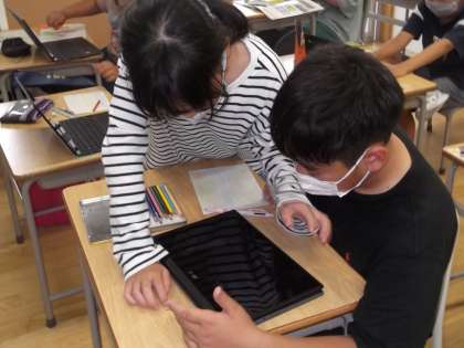 1人1台のパソコンのカメラ機能を活用し、コマ撮りした写真を使ってアニメーションづくりにチャレンジしました。少しずつ絵を動かして写真を撮り、自分が描いた絵が動いて見えることを楽しみました。