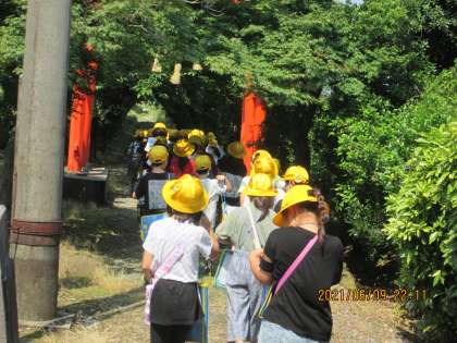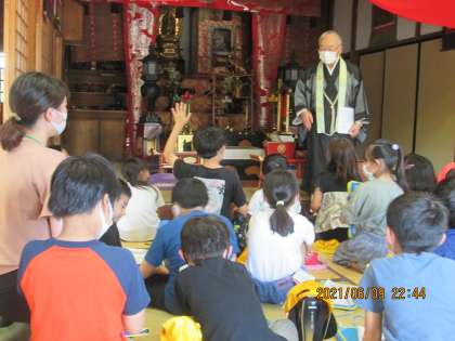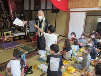 その次に、「刀尾神社」と「刀尾寺」へ行ってきました。刀尾寺の方には、くわしいお話をしていただきました。子供たちは、刀尾神社の始まりや太田小の始まりなど、歴史に興味津々な様子でした。