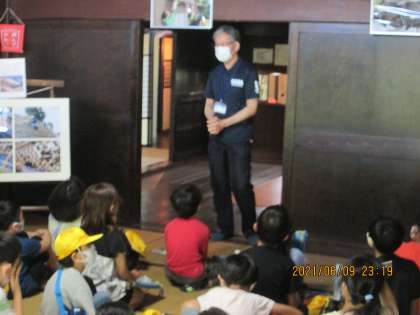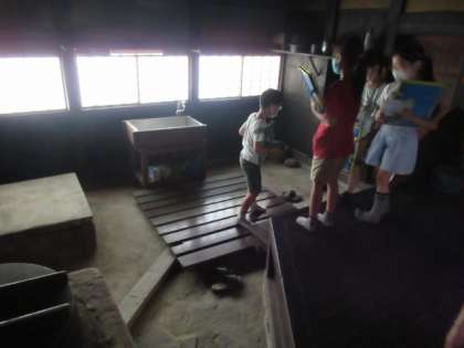 そして最後は「浮田家」へ行ってきました。自分たちの家のつくりとの違いを肌で感じる子供たちでした。また、その当時の浮田家が、大きな農家であったことや現代で言う警察のような役割を果たしていたことなどにとても驚いていました。