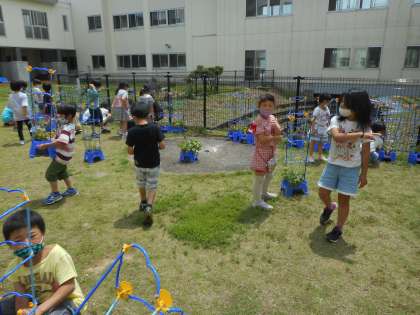 6月25日(金)3時間目、生活科の学習で朝顔の支柱を立てました。
