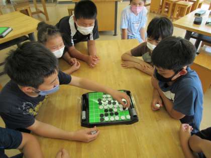 6月30日(水)、1学期最後のクラブ活動でした。オセロトーナメントを開催し、チャンピオンが決まりました。優勝した6年Iさんのコメントです。「途中負けそうな展開だったけれど、逆転できてうれしいです。2学期の将棋トーナメントも頑張ります!」2学期の活動も楽しみですね。