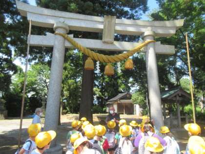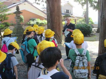 その後、「西番神社」へ行ってきました。総代の方から神社のことについてお話を聞いてきました。神社についてのお話だけでなく、昔から行われている西番相撲についてもお話しして頂きました。感染症のためここ2年は行われていませんが、来年は開かれるといいなと子供たちも願っていました。