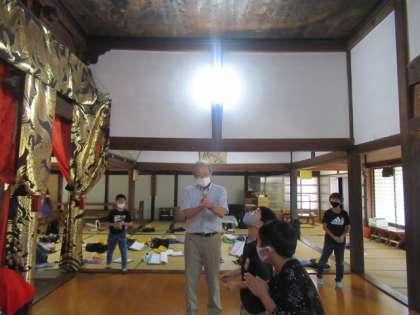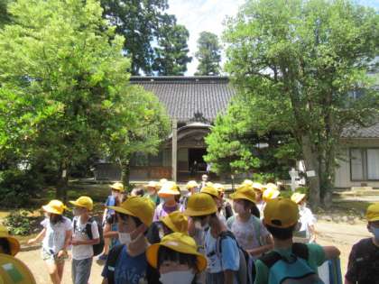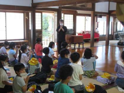 その後、鳴き竜の寺と呼ばれる「正源寺」へ行ってきました。住職の方に、正源寺にまつわるお話を聞いてきました。子供たちは、心を静め、竜を見上げながらパンと手を打ち、聞こえる音を聞いてきました。音が聞こえて嬉しそうな子供たちでした。