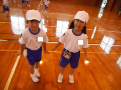 音楽に合わせて、動物になりきって体育館じゅうを歩き回る子供たちの姿が見られました。