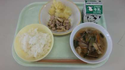 7月16日(金) 公開日 2021/07/16 更新日 2021/07/16 給食室 今日の献立は、ごはん、あっさりチキン、こふきいも、沢煮椀、牛乳 です。 沢煮椀とは、具たくさんな汁物ですが野菜が千切りになっているのが特徴です。 昆布と野菜のだしが効いていい味でした。
