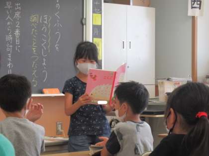 7月19日(月)、今日の国語科では「仕事のくふうみつけたよ」の学習を通して、自分で調べた“身近な○○さんの仕事のくふう”についての報告書をまとめ、発表を聞き合いました。人から聞いたことの伝え方や報告書の文の組み立て方など、丁寧にまとめていました。