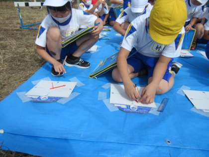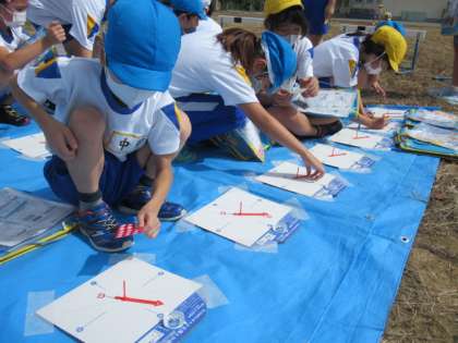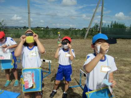 9月10日(金)、今日の理科では時間が変わるとかげの向きがかわるのはどうしてなのかを調べました。2限と昼休み、5限終わりに、太陽の向きとかげの向きを記録しました。また、しゃ光プレートで太陽を観察しました。