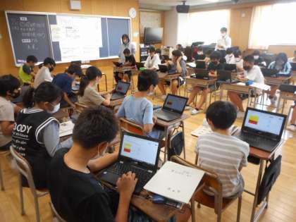 9月15日(水)、音楽の時間に『木星』の鑑賞をしました。音楽を聴きながら感じたことをクロームブック上で共有しながらまとめました。オーケストラの楽器の音色の違いや、曲の前後半での特徴の違いを話し合いました。