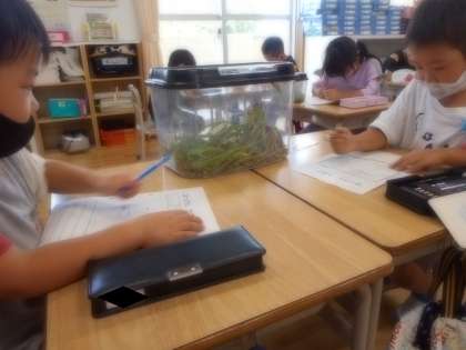 9月15日(水)4時間目、生活科の学習で虫の観察をしました。