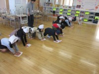 9月16日(木)1時間目、体育科の学習で大縄を使った幅跳び遊びをしました。