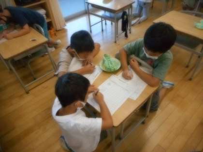互いのよさを「ほめほめカード」に書きました。「ほんものみたい!」「おっきいね!」と友達の作品のよさを、自然と口にしている子供たちでした。
