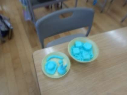 9月21日(火)1時間目、図画工作科の学習で、以前つくった粘土の「ごちそう」を鑑賞しました。